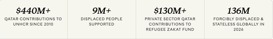 Qatar’s overall contributions to UNHCR, exceeding US$440 million (QR1.6 billion) since 2010, have supported more than 9 million forcibly displaced people. These contributions fund education, healthcare, shelter, cash assistance, and livelihoods programmes — all essential to safeguarding the dignity of displaced populations.